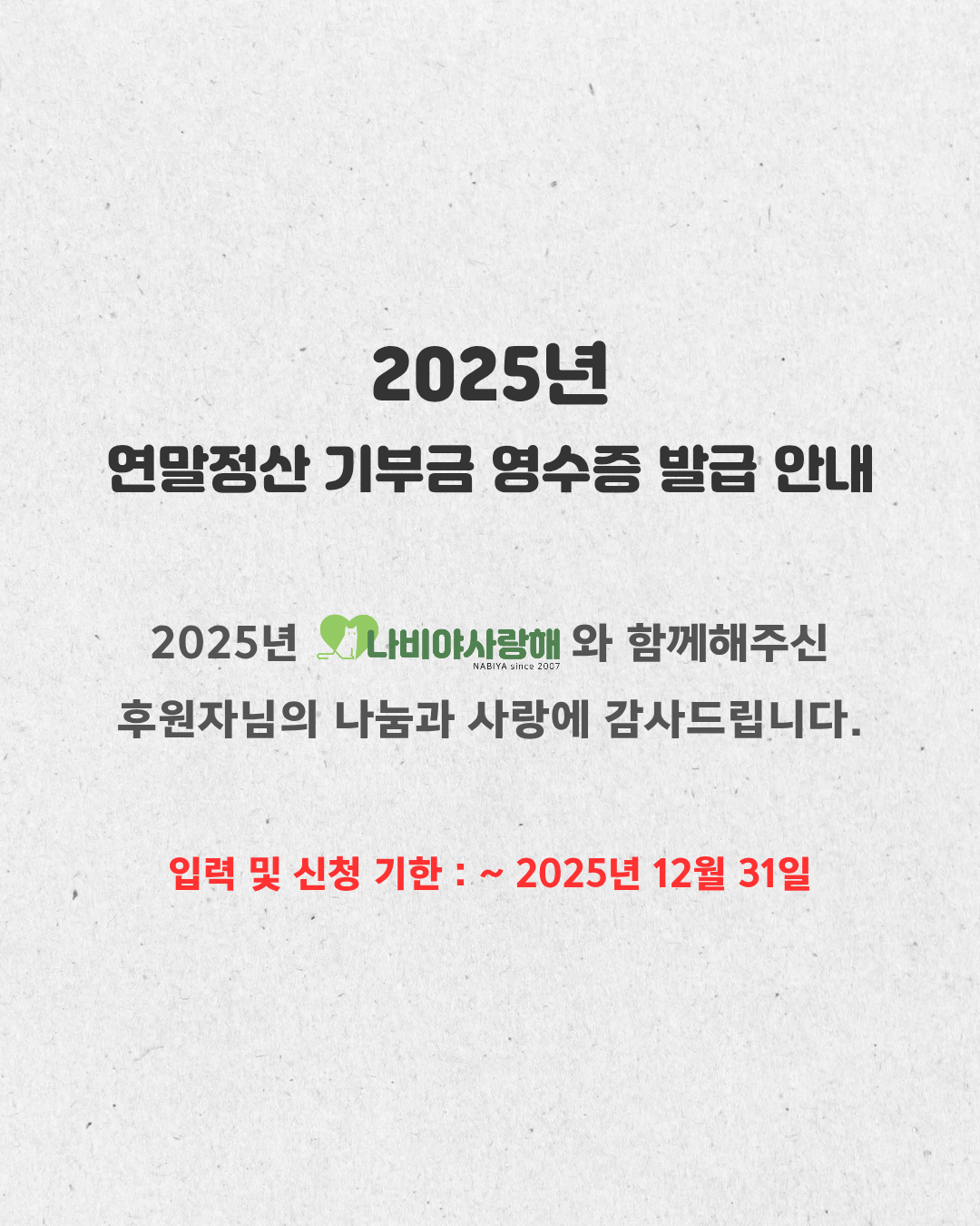 * 기부금 영수증은 2026년 1월 중순 이후, 국세청 연말정산 간소화 서비스를 통해 조회 및 발급 가능합니다.