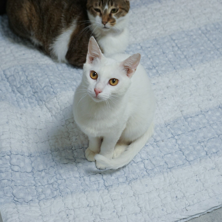 여전히 사람도 좋고, 고양이 누나 형들도 좋아하는 순둥이예요!